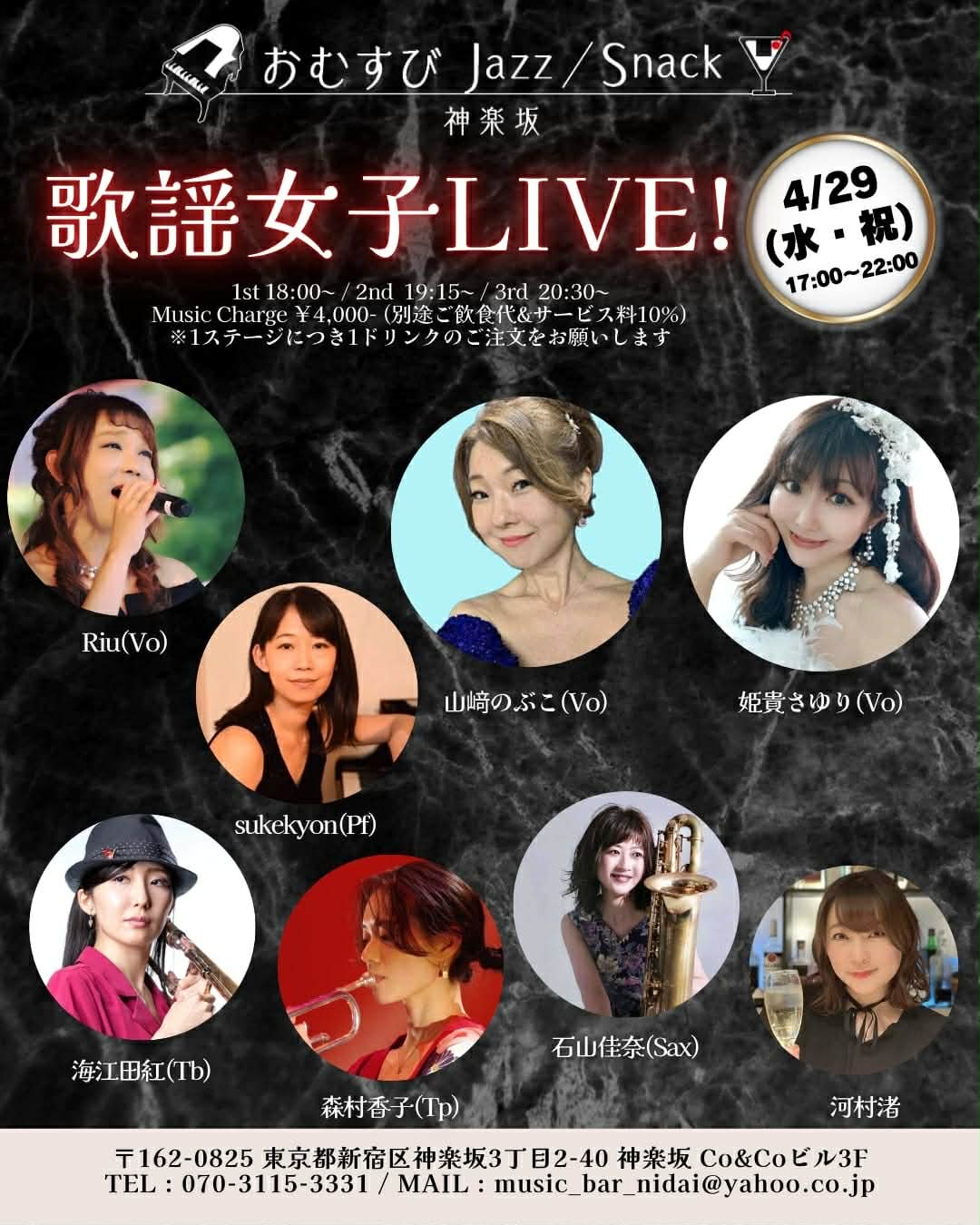 2026年4月29日(水祝)[おむすびJazz/Snack神楽坂 歌謡女子LIVE!]